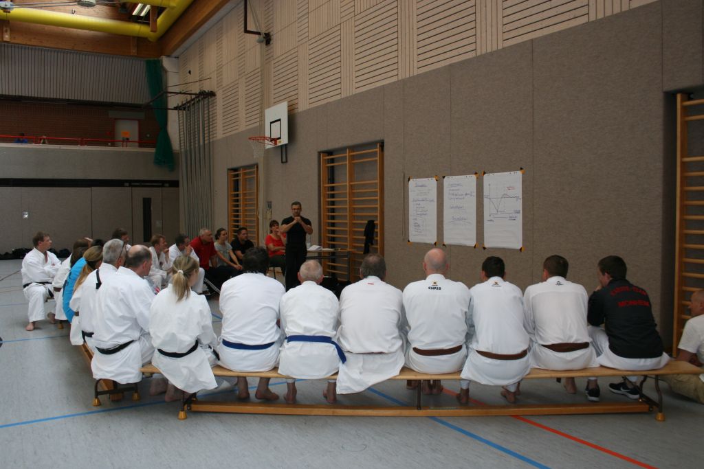 Entsprechend des Kyu-Grades absolvierten insgesamt 12 Kinder sowie 4 Erwachsene nacheinander ihre Prüfung.