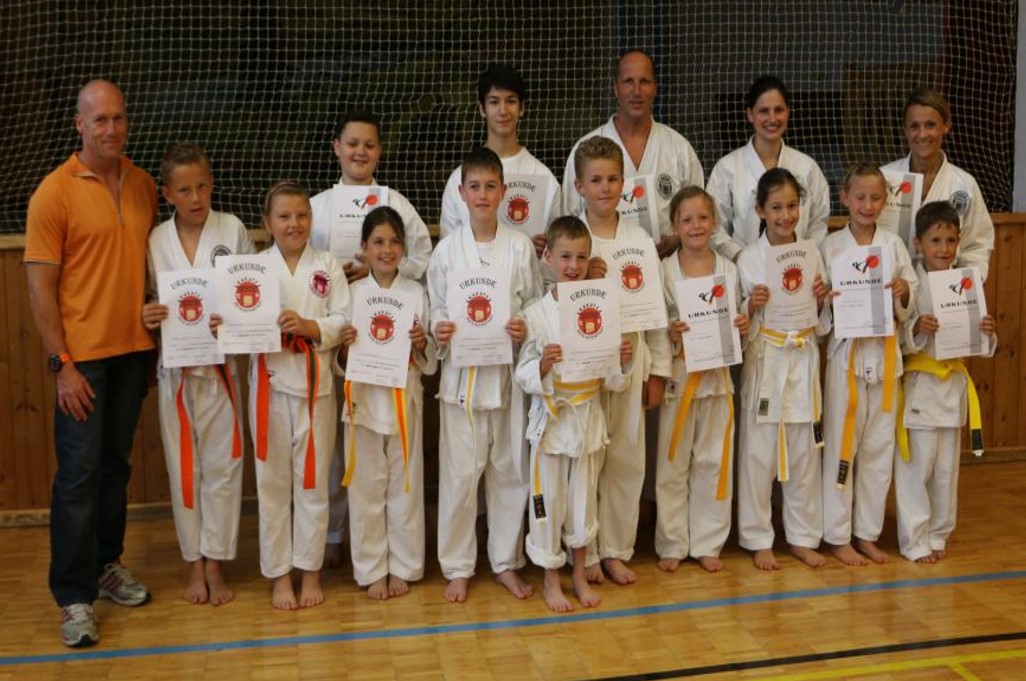 Entsprechend des Kyu-Grades absolvierten insgesamt 15 Kinder/Jugendliche sowie 4 Erwachsene ihre Prüfung.