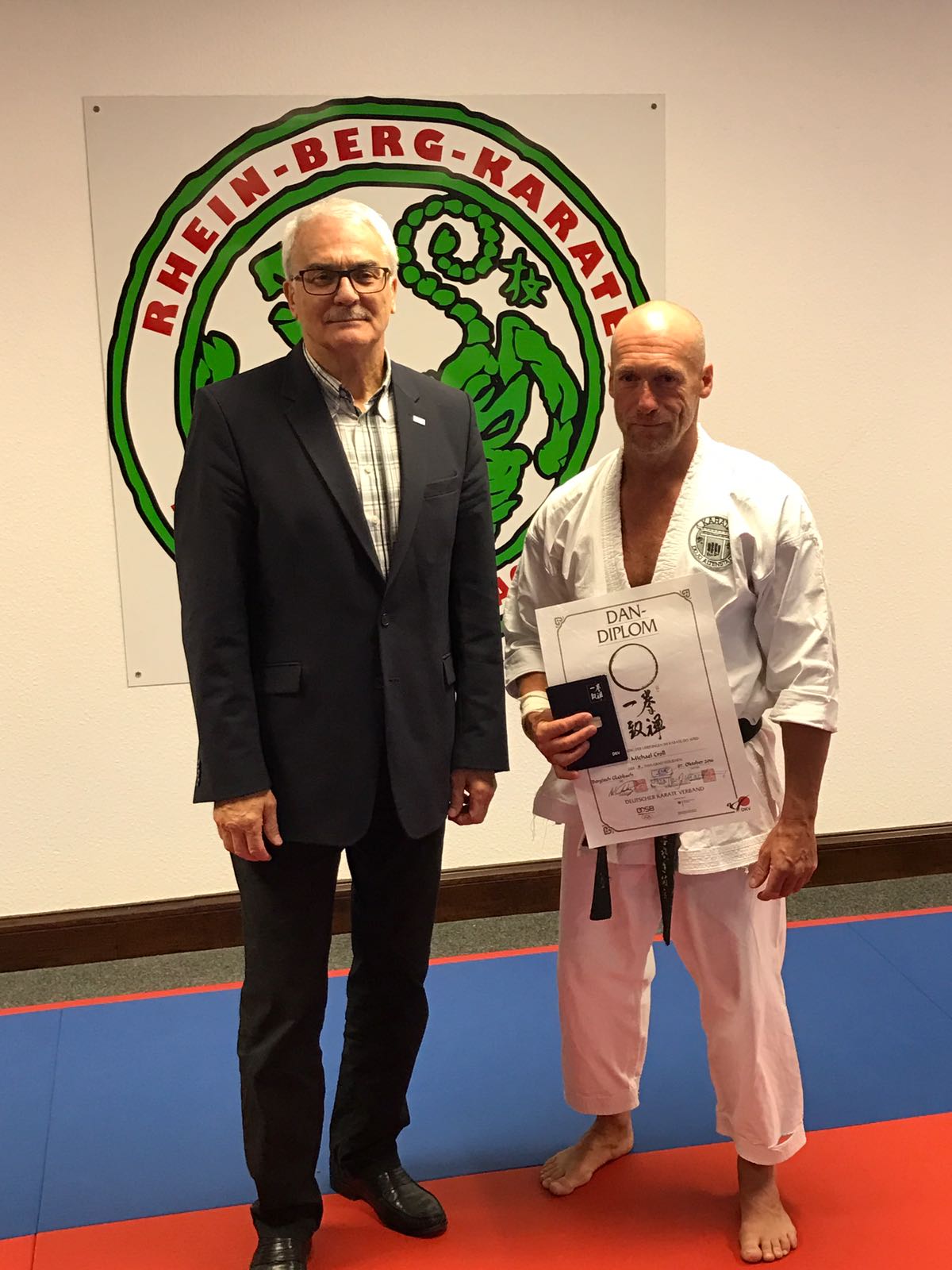 Druckfrisch die Nachricht aus Bergisch Gladbach: Mike hält seine Urkunde zum 6. DAN-Diplom in der Hand.